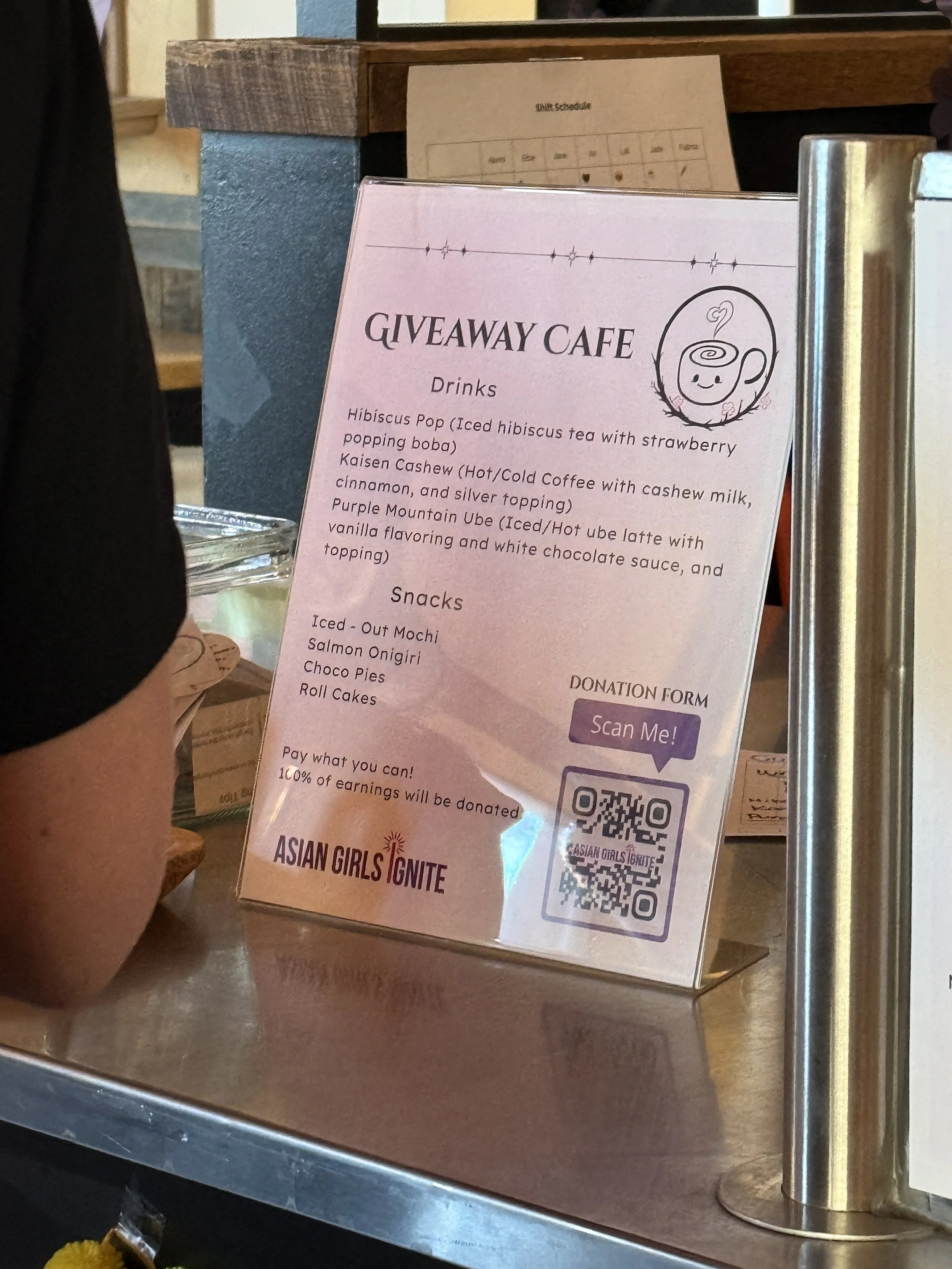 Student’s named their pop-up, Giveaway Café, where every dollar they raise through their special menu will be donated to four organizations that represents communities causes they are passionate for.