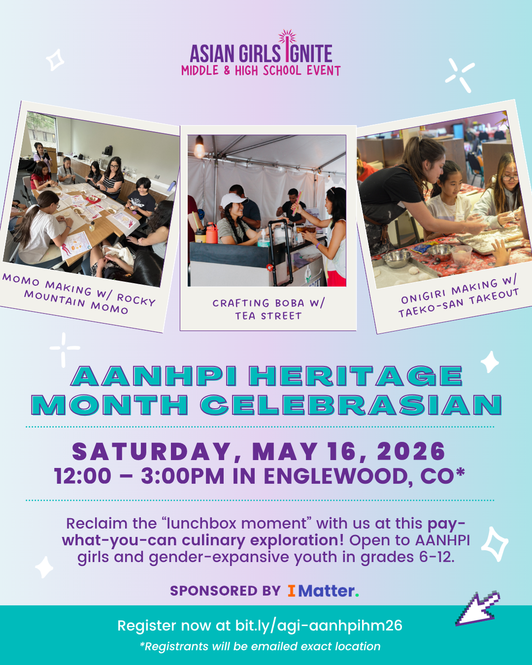 This AANHPI Heritage Month, join Asian Girls Ignite, Rocky Mountain Momo, Taeko-san Takeout, and Tea Street for a hands-on culinary exploration! We aren’t just eating; we’re building, tasting, and learning the stories behind the flavors we love.